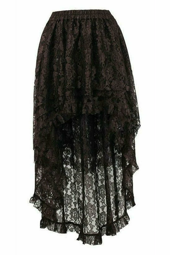 Our Brown Lace Hi-Low Skirt is a modern-day take on the classic v-skirt silhouette. The unique fabric creates an interesting and unexpected design that is sure to stand out. With an elastic waistband, this skirt will flatter nearly any figure.