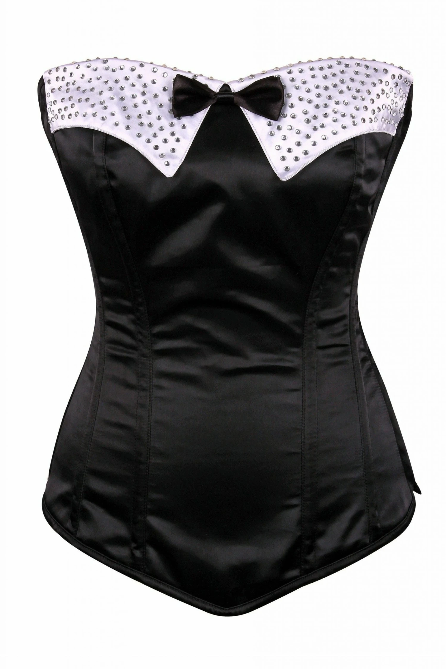 This Formal Tuxedo leather steel-boned overbust corset has a premium front zipper closure, 8 spiral steel bones, and 4 static steel bones in the back. Nickel brass grommets with laces at the back and garter loops complement the soft and comfortable 100% cotton twill lining. Add this stylish, slimming corset to spice up your wardrobe.