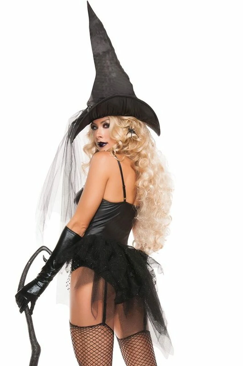 The power of the dark forces shall be with you as you arrive at the party wearing this Sexy Witch Costume. Fearful eyes shall be on you, as you gaze upon the crowd and decide who you shall cast your evil spell upon, to draw their sexual passion to you. Once in the grasp of your black magic, they will have no choice but to relinquish themselves to you, to do your bidding both at the party and after, in the lustful darkness of night.